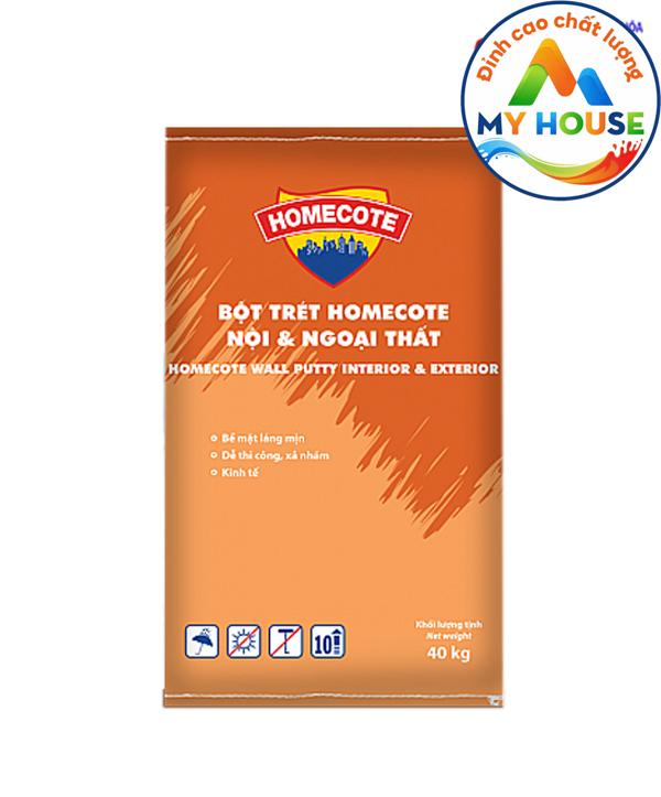 Bột trét tường Homecote Wall Putty nội và ngoại thất được sử dụng để tạo bề mặt láng mịn và sửa chữa lỗi trên bê tông, hồ vữa, gạch. . . trước khi thi công sơn lót hoặc sơn phủ.