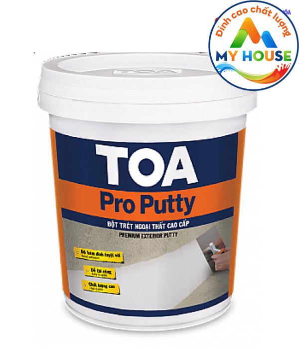 Bột trét tường Toa Pro Putty là bột trét ngoại thất cao cấp cho bề mặt phẳng mịn tuyệt hảo, che khiếm khuyết trên bề mặt bê tông hiệu quả như các vết chân chim, vết rạn nứt nhỏ hoặc lớn. Dễ thi công, thích hợp để trét lót bề mặt nền ngoại thất, cho bề mặt có độ bám dính tốt và chất lượng cao