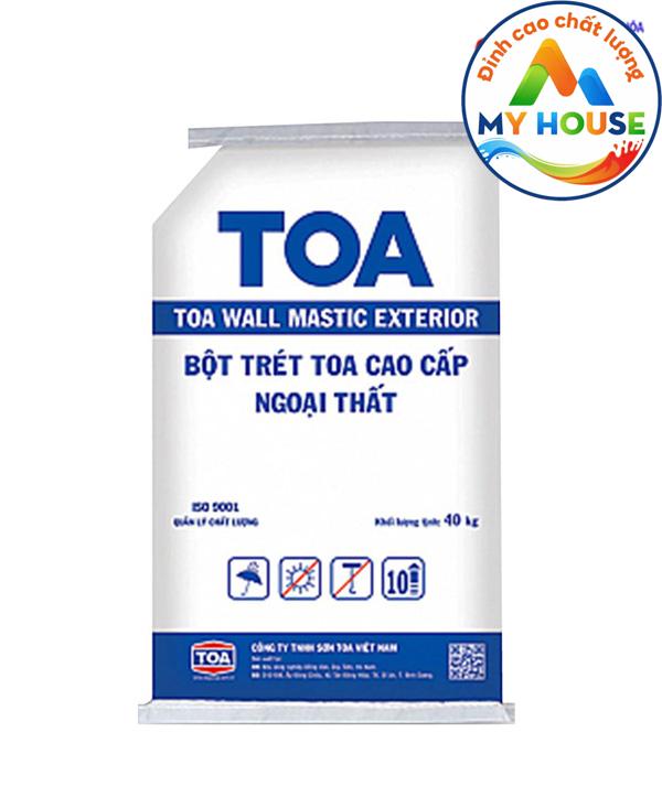 Bột trét Toa Wall Mastic exterior là bột trét (bột bả) tường ngoại thất dùng cho các bề mặt như: tường xi măng, trần nhà, bê tông và các bề mặt cần xử lý trước khi sơn lót hoặc sơn phủ. Thích hợp cho mọi loại sơn nước ngoại thất. Không bong tróc, nứt nẻ. Bền vững với thời gian, chịu đựng mọi thời tiết.