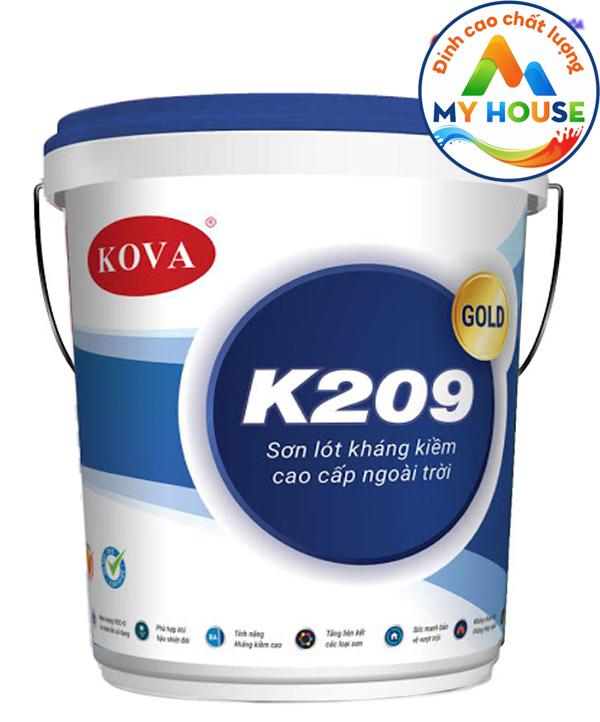 Sơn lót ngoài trời Kova K209: là sơn phủ ngoài trời, hệ nước trên cơ sở Methyl Methacrylat có tính kháng kiềm cao, chịu được thời tiết hóa hoàn toàn, rất phù hợp với khí hậu nhiệt đới.